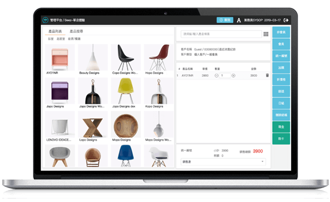 POS介面讓你的門店馬上開張,並可整合後台的強大功能。